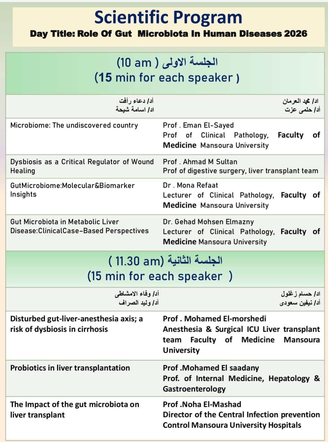01 فبراير,2026 اليوم العلمى الخامس للمعامل بالمركز يوم 2/9 بقاعة المحاضرات بالمركز يتشرف الجهاز الهضمى بدعوة سيادتكم لحضور اليوم العلمى الخامس للمعامل بالمركز يوم 2/9 بقاعة المحاضرات بالمركز